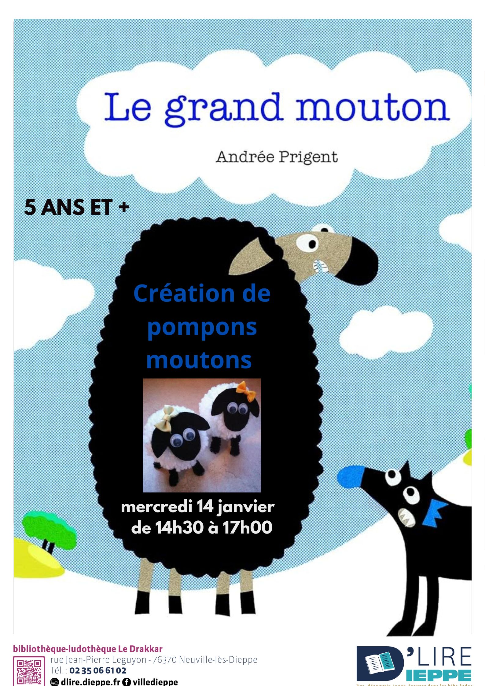 Alors vient créer ton pompons autour du livre " Le grand mouton"